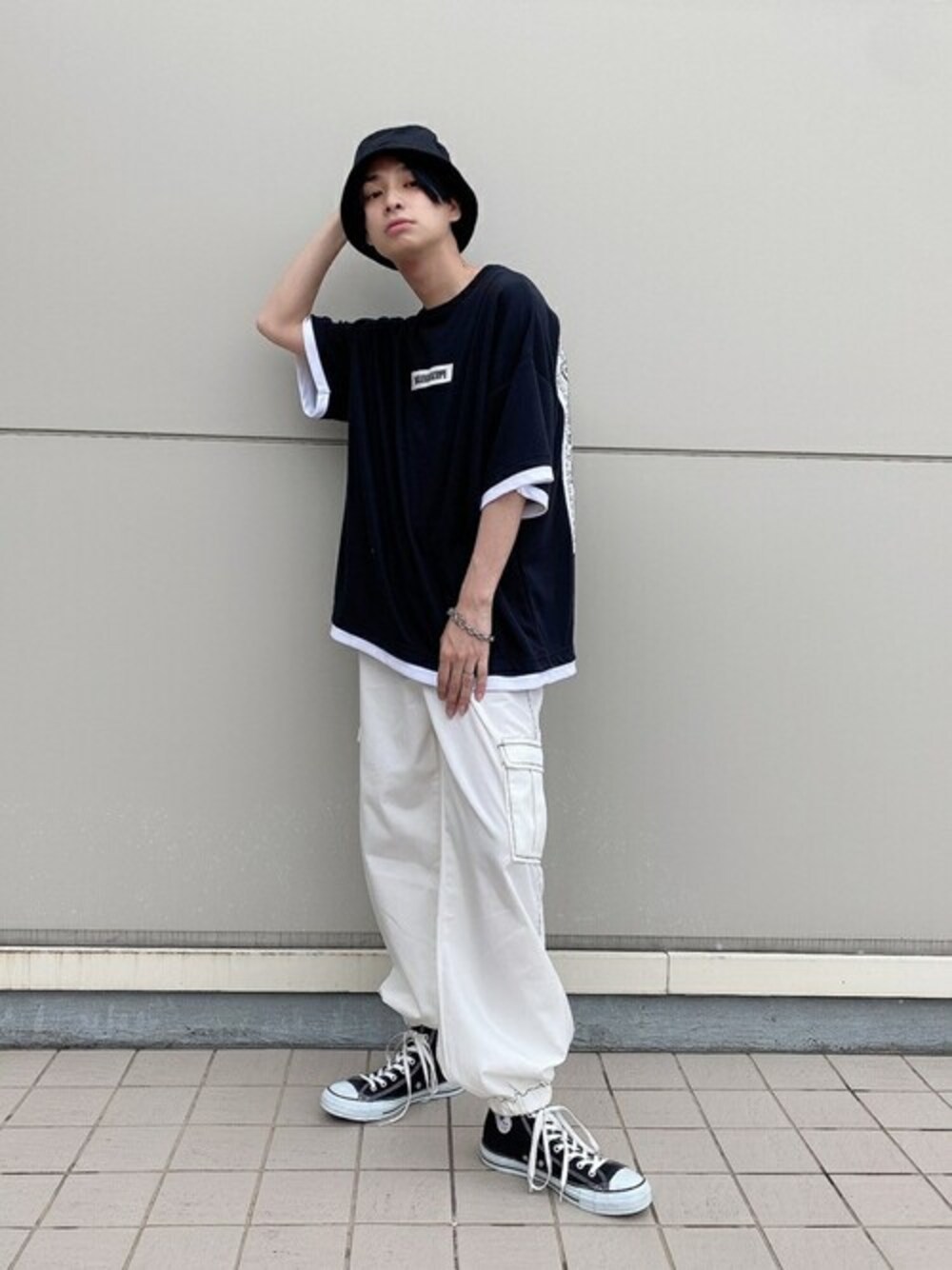 WEGO(WEGO STAFF)のTシャツ/カットソー「WEGO/バンダナプリントレイヤードビックシルエット半袖Tシャツ」を使ったコーディネート