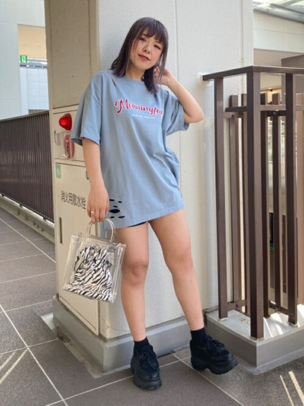 WEGO(WEGO STAFF)のTシャツ/カットソー「WEGO/ツイルワッペンダメージビックシルエットTシャツ」を使ったコーディネート