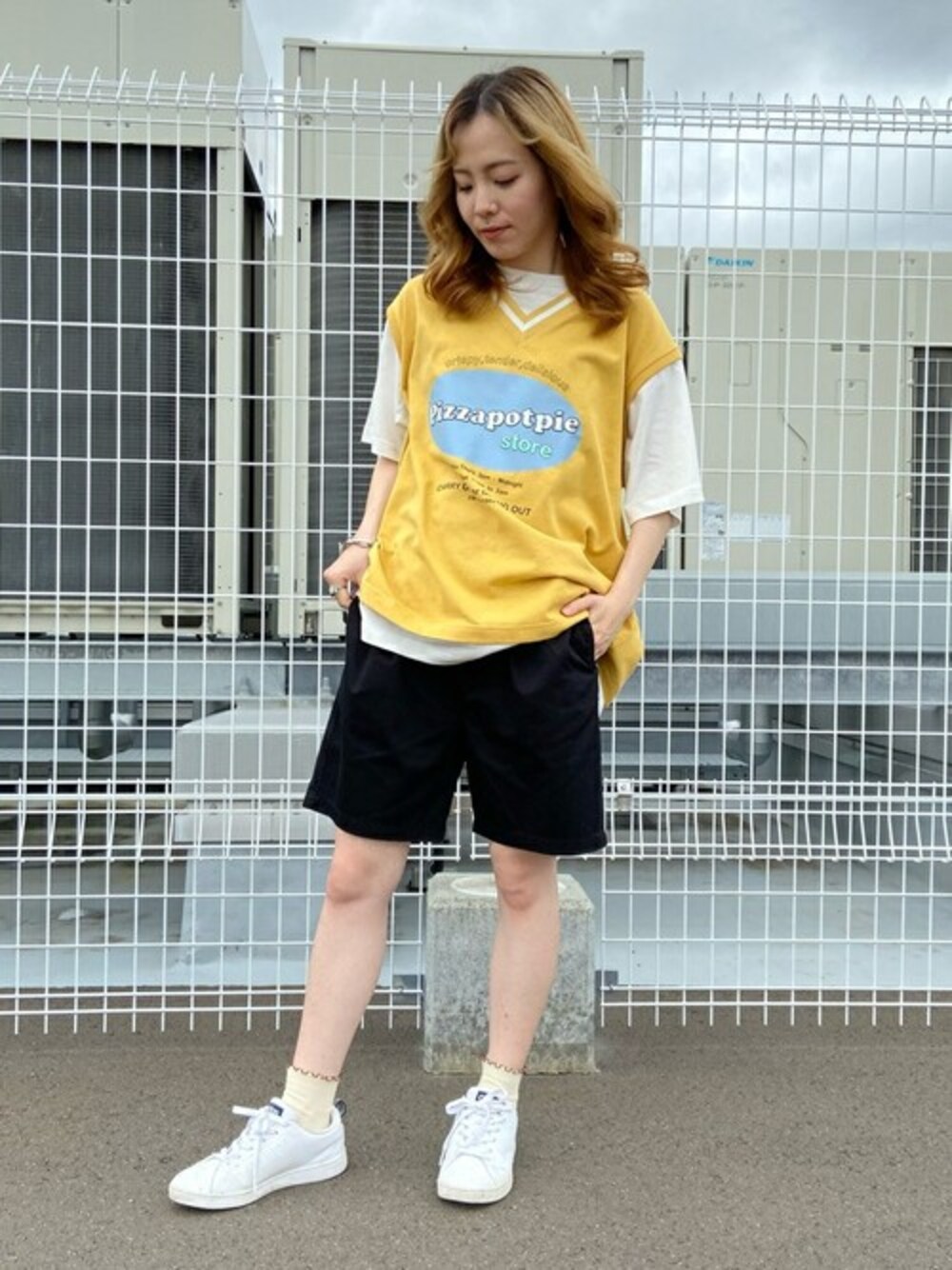 WEGO(WEGO STAFF)のTシャツ/カットソー「WEGO/pizzapotpieレイヤードTシャツ」を使ったコーディネート