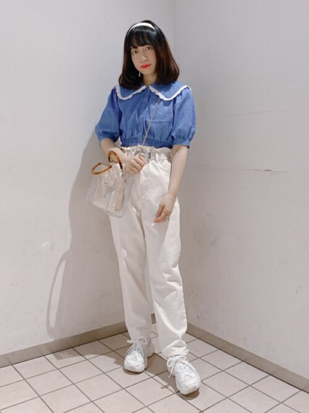 WEGO(WEGO STAFF)のシャツ/ブラウス「WEGO/レースビッグシルエット襟ショートブラウス」を使ったコーディネート