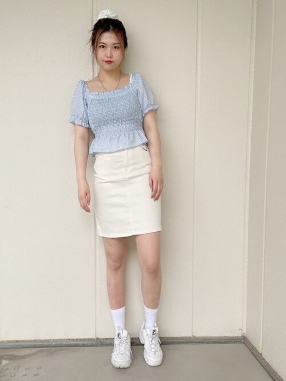 WEGO(WEGO STAFF)のシュシュ「WEGO/チェックシュシュ」を使ったコーディネート