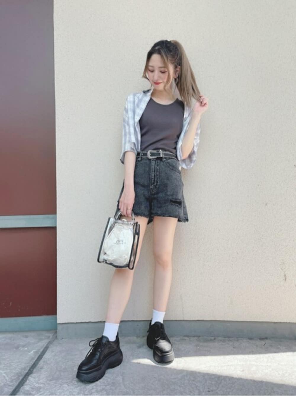 WEGO(WEGO STAFF)のシャツ/ブラウス「WEGO/タンク付きダメージショートシャツ」を使ったコーディネート