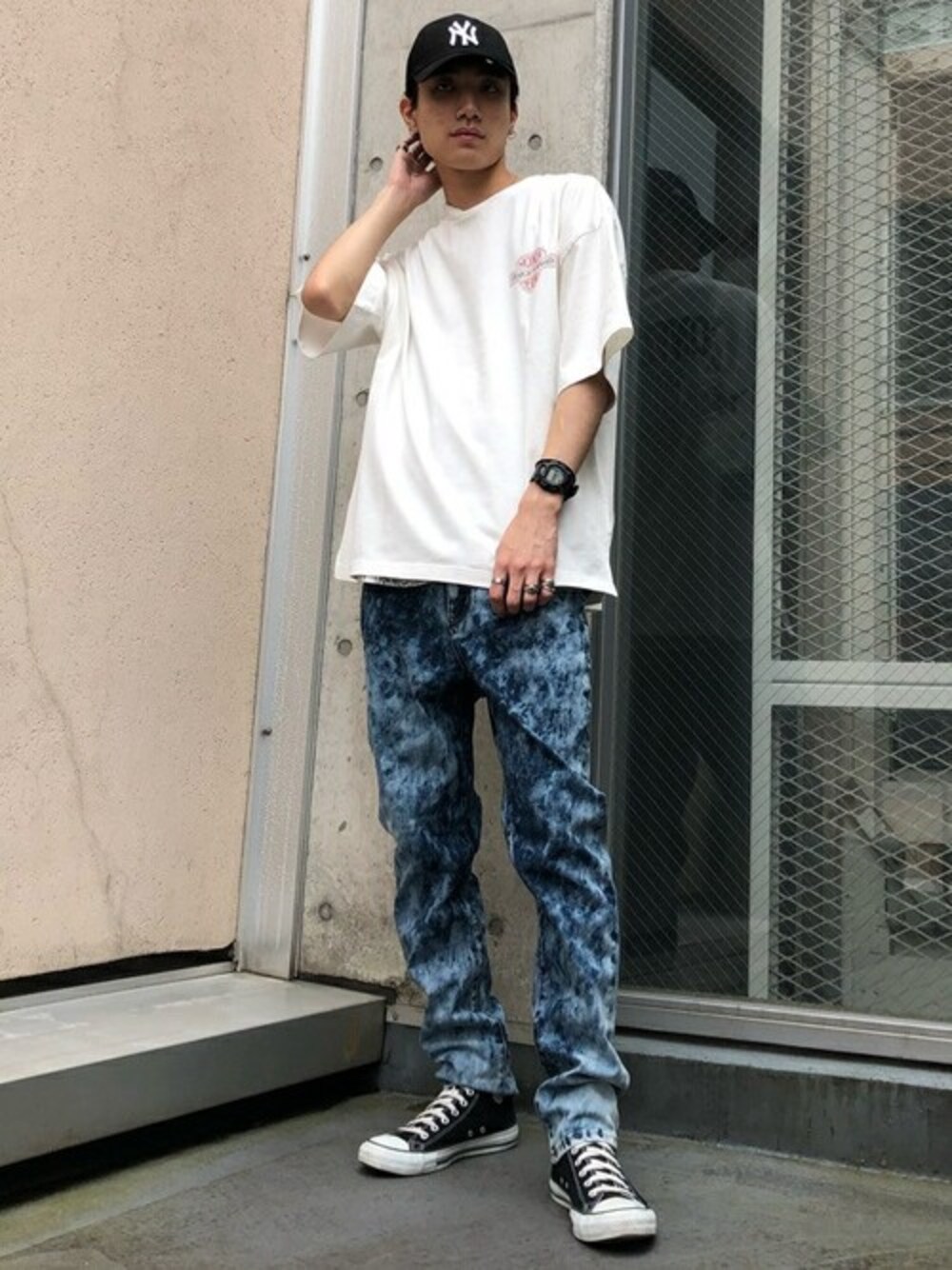 WEGO(WEGO STAFF)のデニムパンツ「WEGO/ブリーチデニムスキニーパンツ」を使ったコーディネート