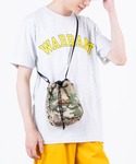 鮮やかなレッドは、オーバーサイズのTシャツと巾着ショルダーを合わせて古着女子テイストに! シンプルなコーデの時はネックレスなどアクセサリーを付けるとお洒落になるのでオススメ♪