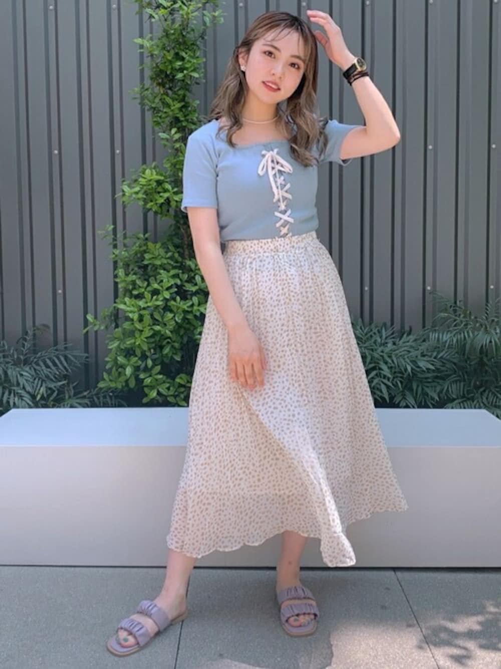 WEGO(WEGO STAFF)のTシャツ/カットソー「WEGO/2WAYレースアップスクエアリブTシャツ」を使ったコーディネート