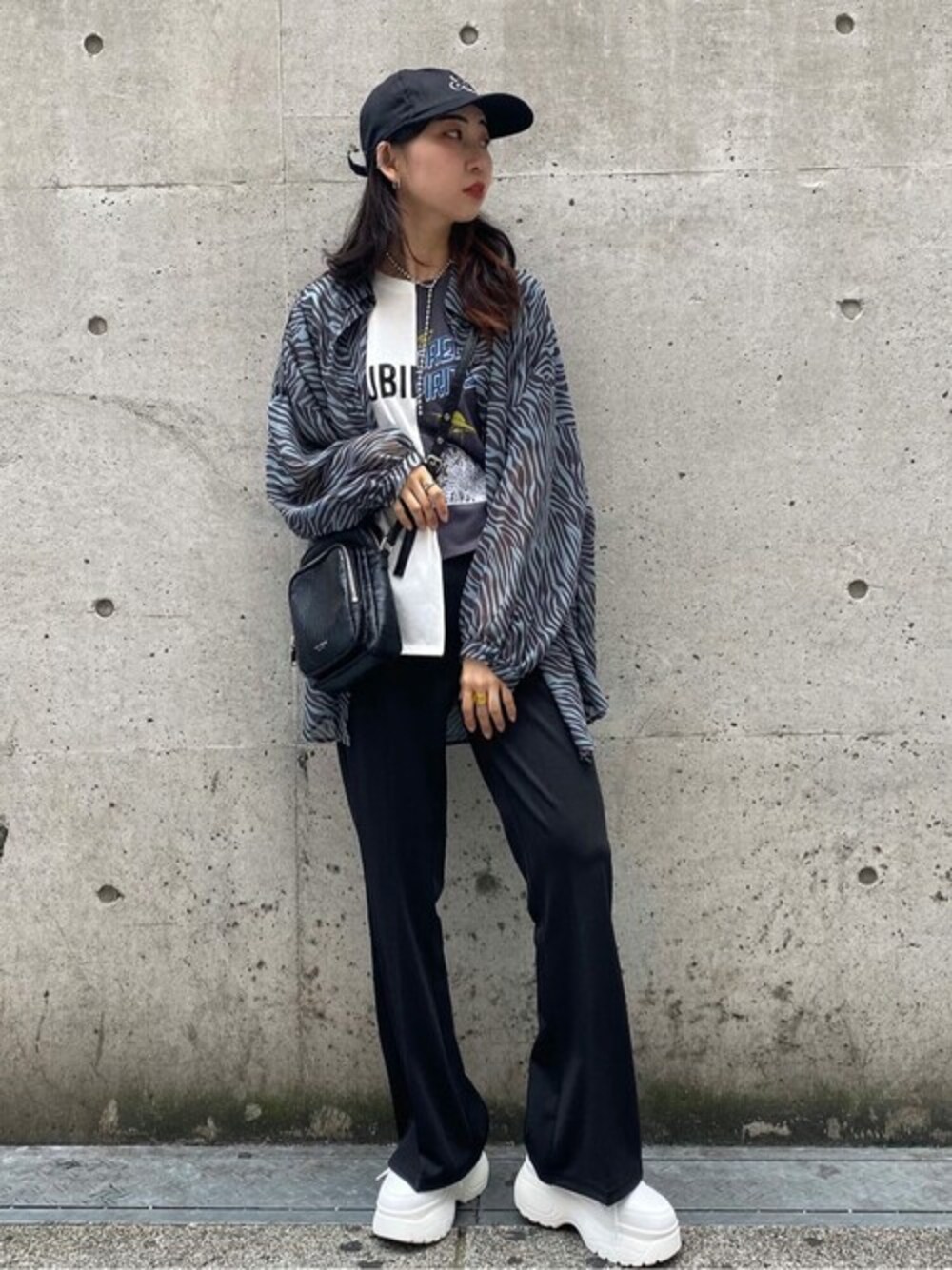 白黒でまとめたコーデ! 人気のフレアパンツは柔らかく履きやすくてオススメ!