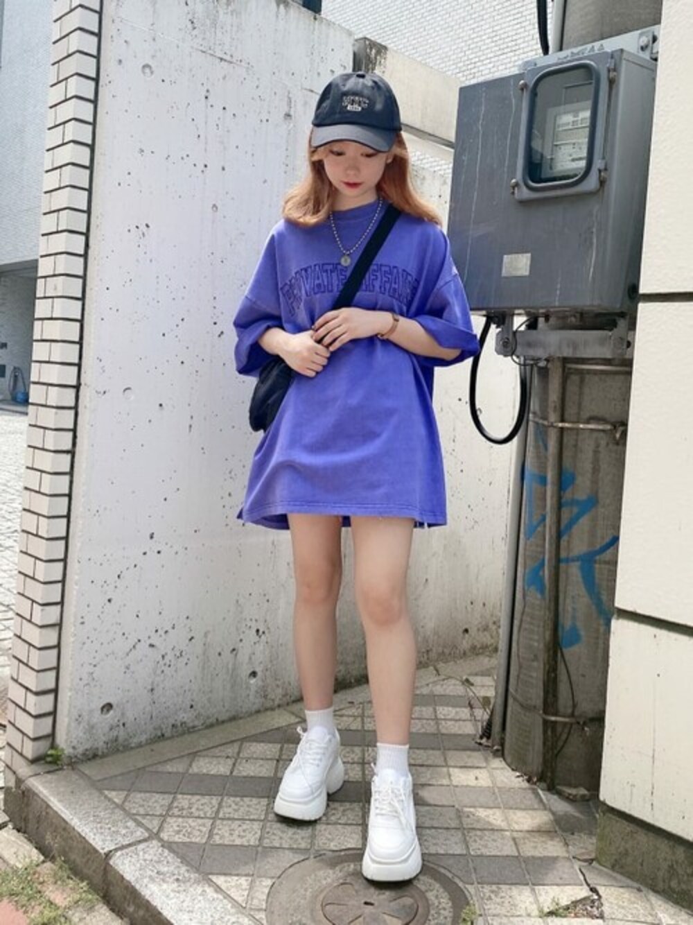 メンズのBIGTを使ったストリートコーデ! 低身長スタイリング!メンズのBIGTシャツはワンピ風にも着れちゃう!