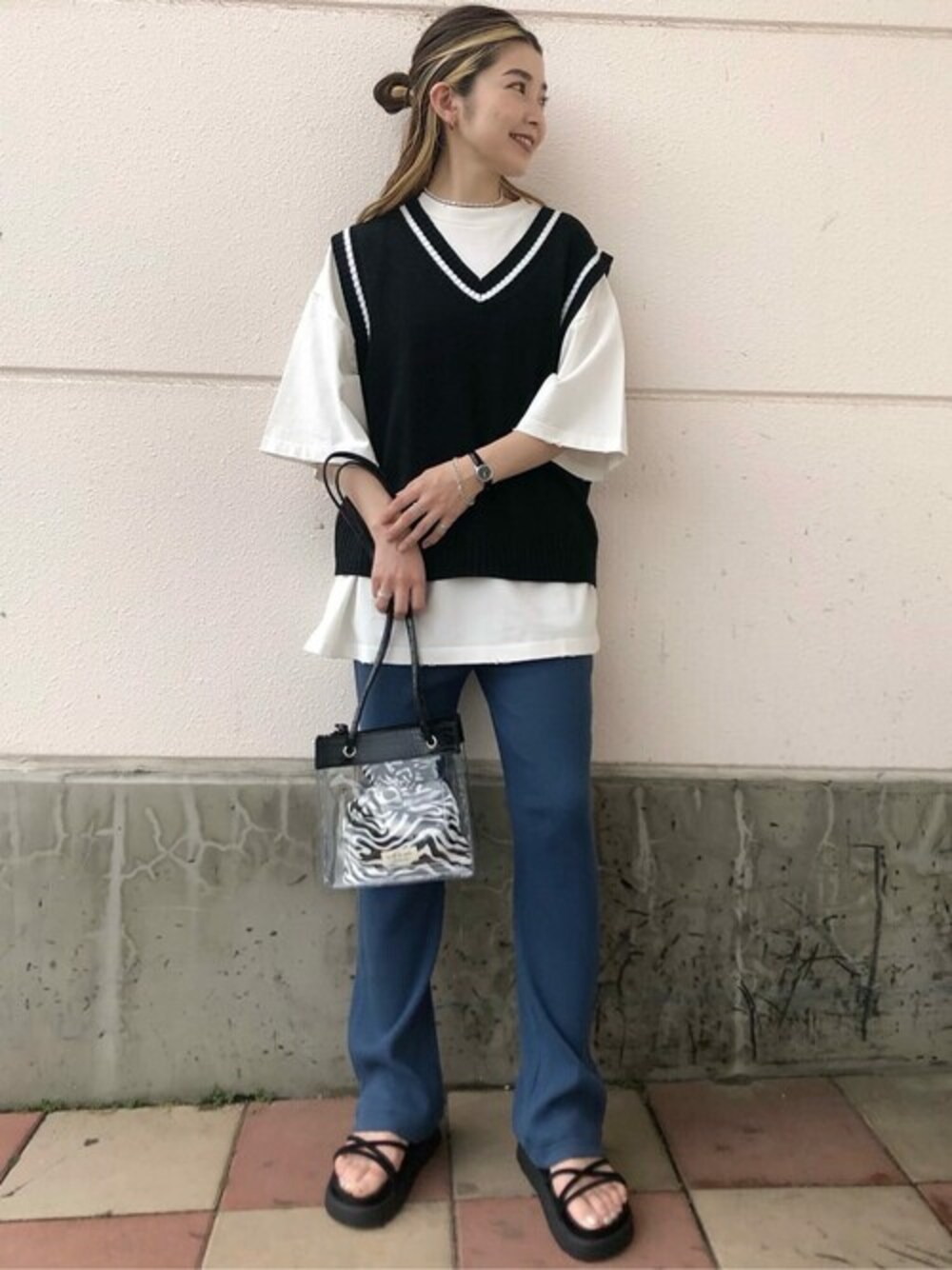 WEGO(WEGO STAFF)のベスト「WEGO/オーバーサイズニットベスト」を使ったコーディネート