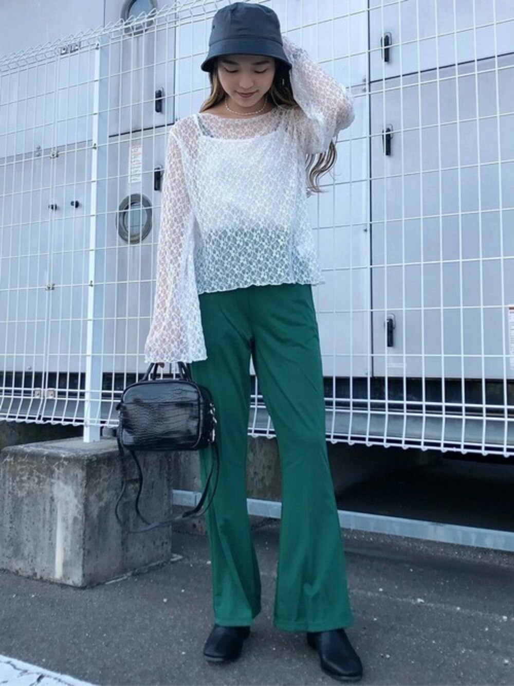 透け感のあるトップスで女の子らしさ◎