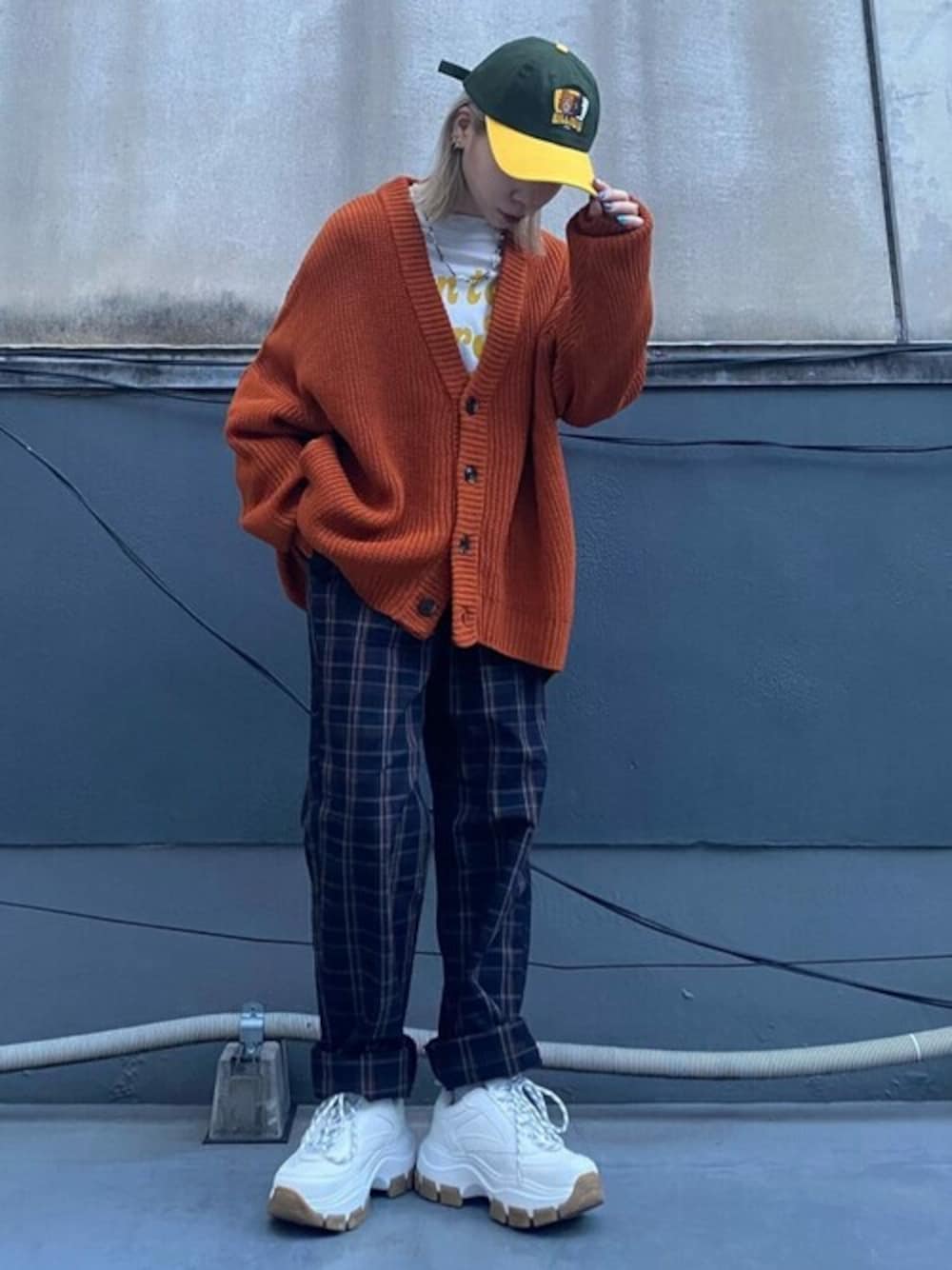 カーディガンとボトムスはメンズのアイテム! オーバーサイズで着れて女の子にもオススメです!