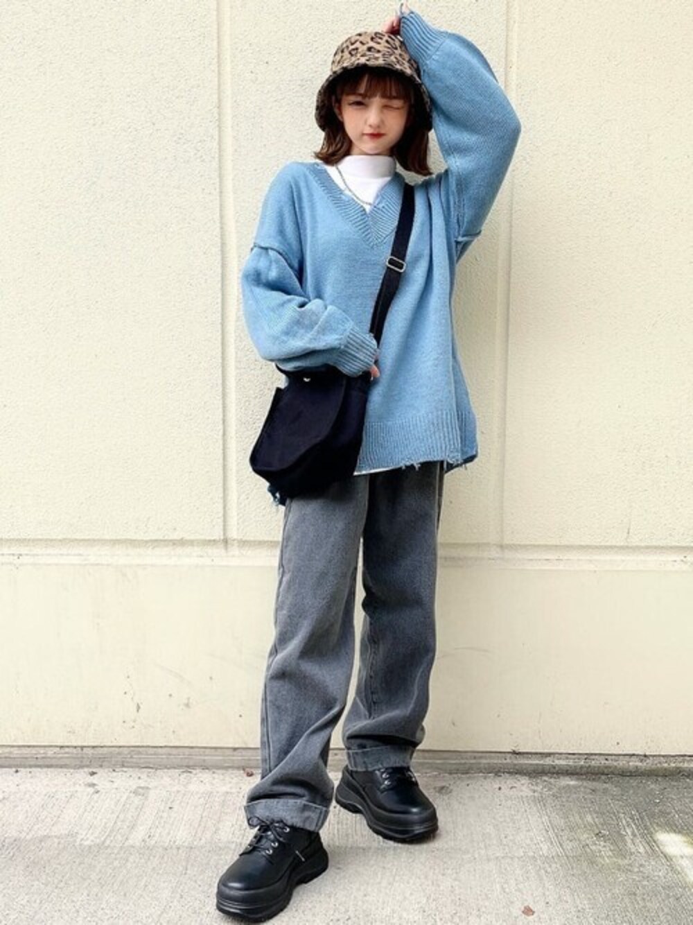 WEGO(WEGO STAFF)のニット/セーター「WEGO/ビックダメージVネックニット」を使ったコーディネート