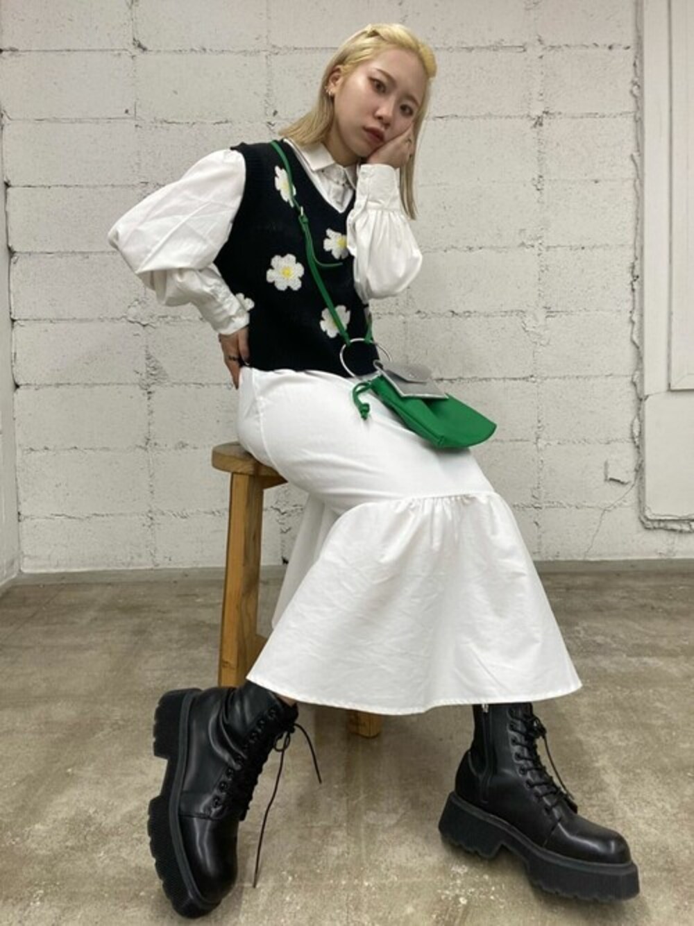 トレンドのニットベスト! 花柄が韓国っぽくて可愛いです♡ショート丈なのでワンピースやシャツとのレイヤードにピッタリです!