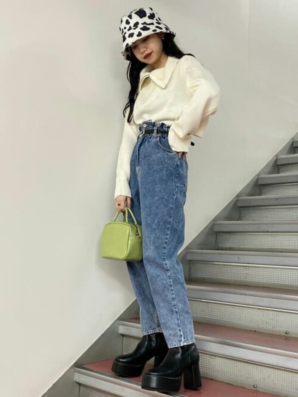 シンプルにデニムと合わせてカジュアルに! 襟が大きいので小顔に見える!!