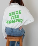 カレッジのスウェットとシェフパンツのトレンドコーデ☆ スウェットはカジュアルながらボリューム袖で女性らしさをプラス✨