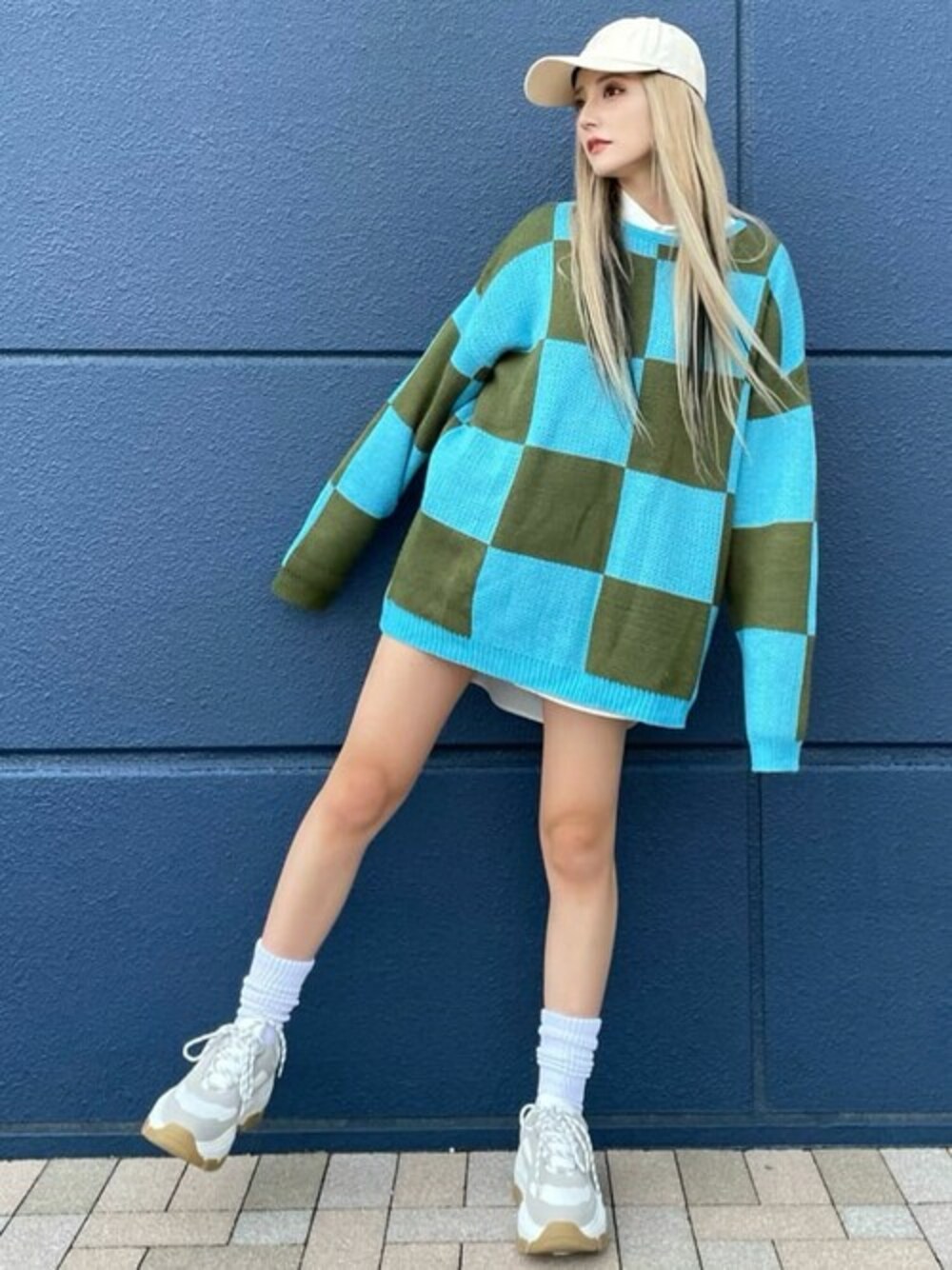 チェッカー柄 再熱してます!!!!!!!! じわじわとキテるので早めに流行を押さえておきましょう Ü W♡Cのニットはとても大きめなので、ワンピ風に着ることもできますし、トップスとしても大活躍間違いなしです! 厚底スニーカーと合わせて、足長効果◯