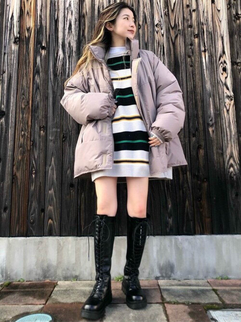 ビッグシルエットのニットはワンピ風に着るのが可愛い♡♡♡ ロングブーツを合わせるとトレンド感も◎