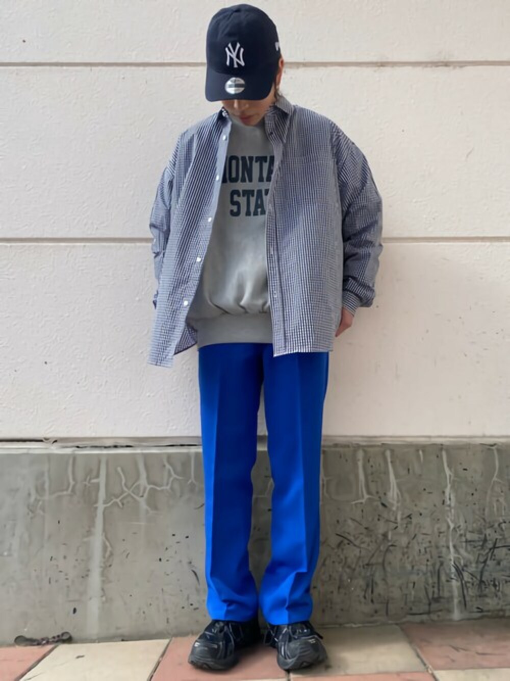 ルーズチェックシャツを使用したコーデです! インナー使いにももってこいなオススメのシャツです! ギンガムチェックでメンズのアイテムですがレディースの方にも着て頂けるアイテムになっています!