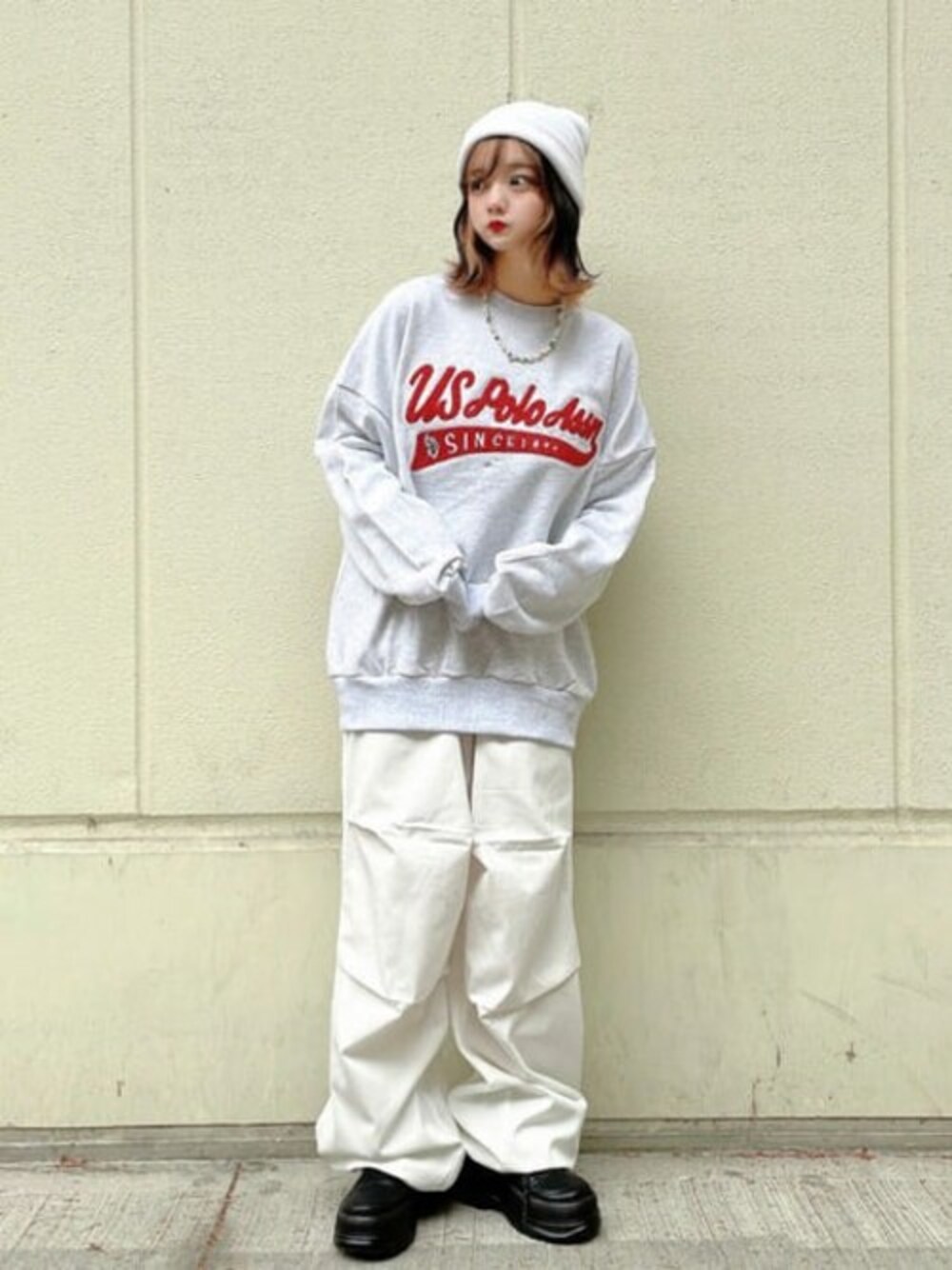 USPOLOのスウェットはユニセックスで着用可能なので カップルこコーデにもぴったり☆ だぼっとしたパンツでメンズライクに!!!