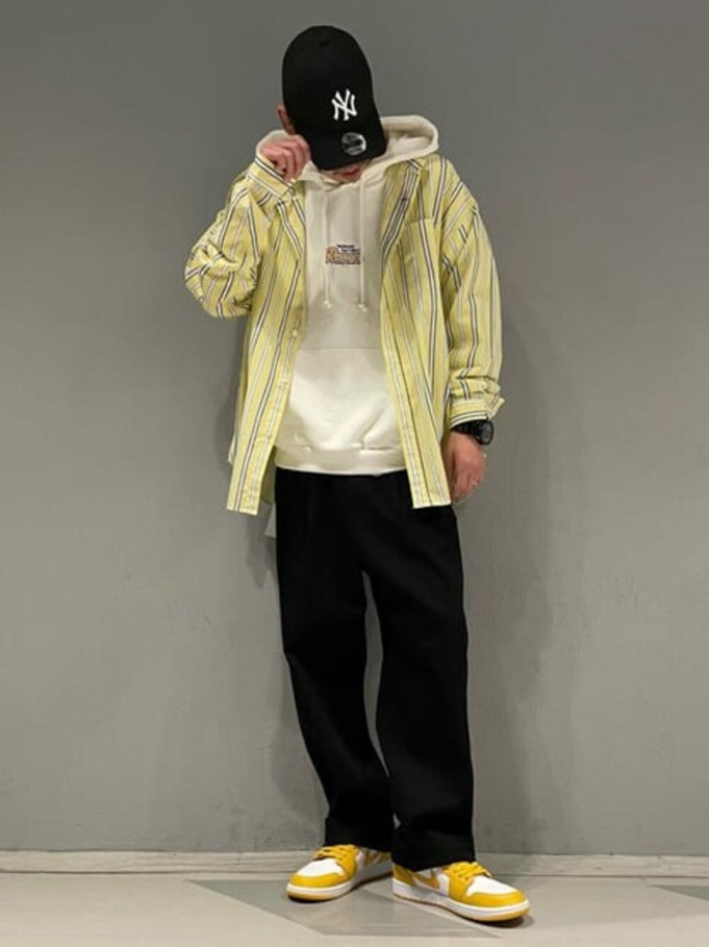 ストライプBIGシャツ‼️ パーカーと合わせたストリートスタイル‼️ かなり身幅もあってゆったりとしたBIGシャツは オーバーサイズで着てパーカーと重ねても👍👍