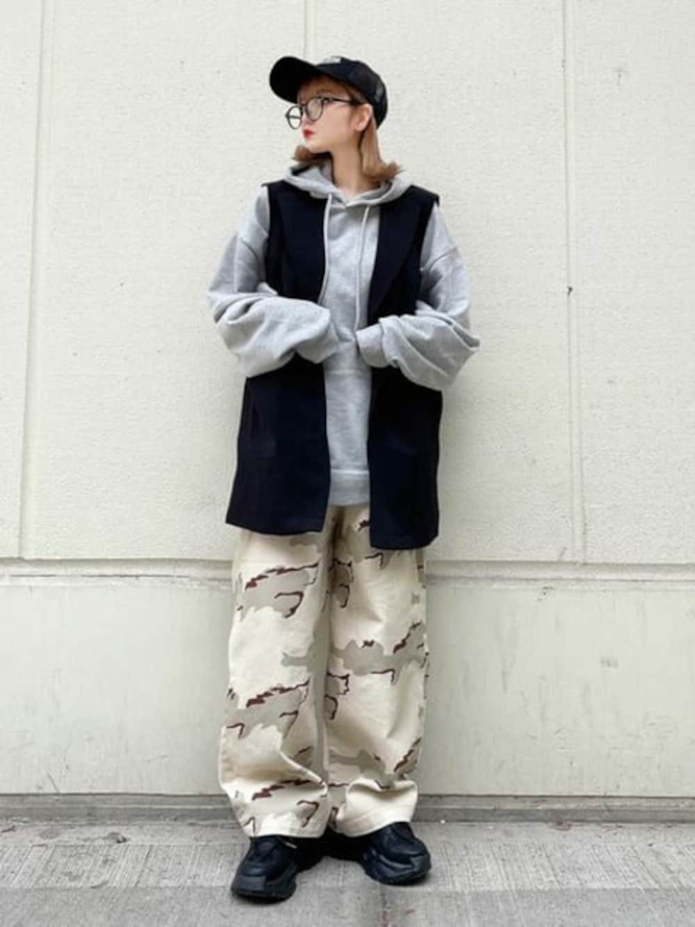 低身長でもメンズライクに! 迷彩のパンツは、ユルダボで ストリート好きな方にはおすすめです!
