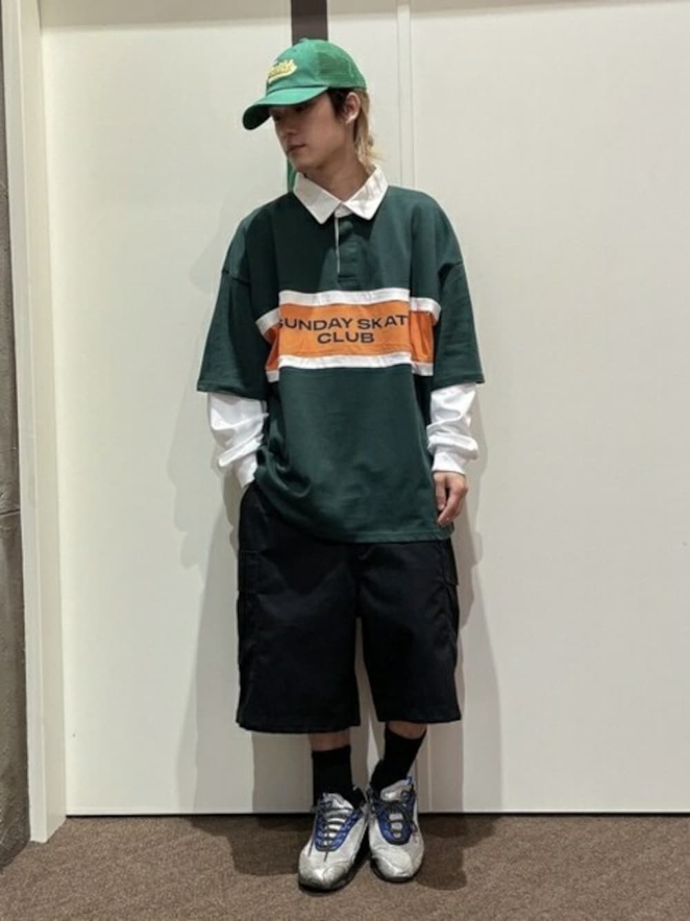 夏に向けてスタートダッシュ!! 暑い日が続いていますが半袖短パンはまだ早いかな、、、 そんな時にロンT×ラガーシャツのレイヤードスタイル! ワイドカーゴのハーフパンツ(黒)も軽すぎず、今の時期にぴったり◎