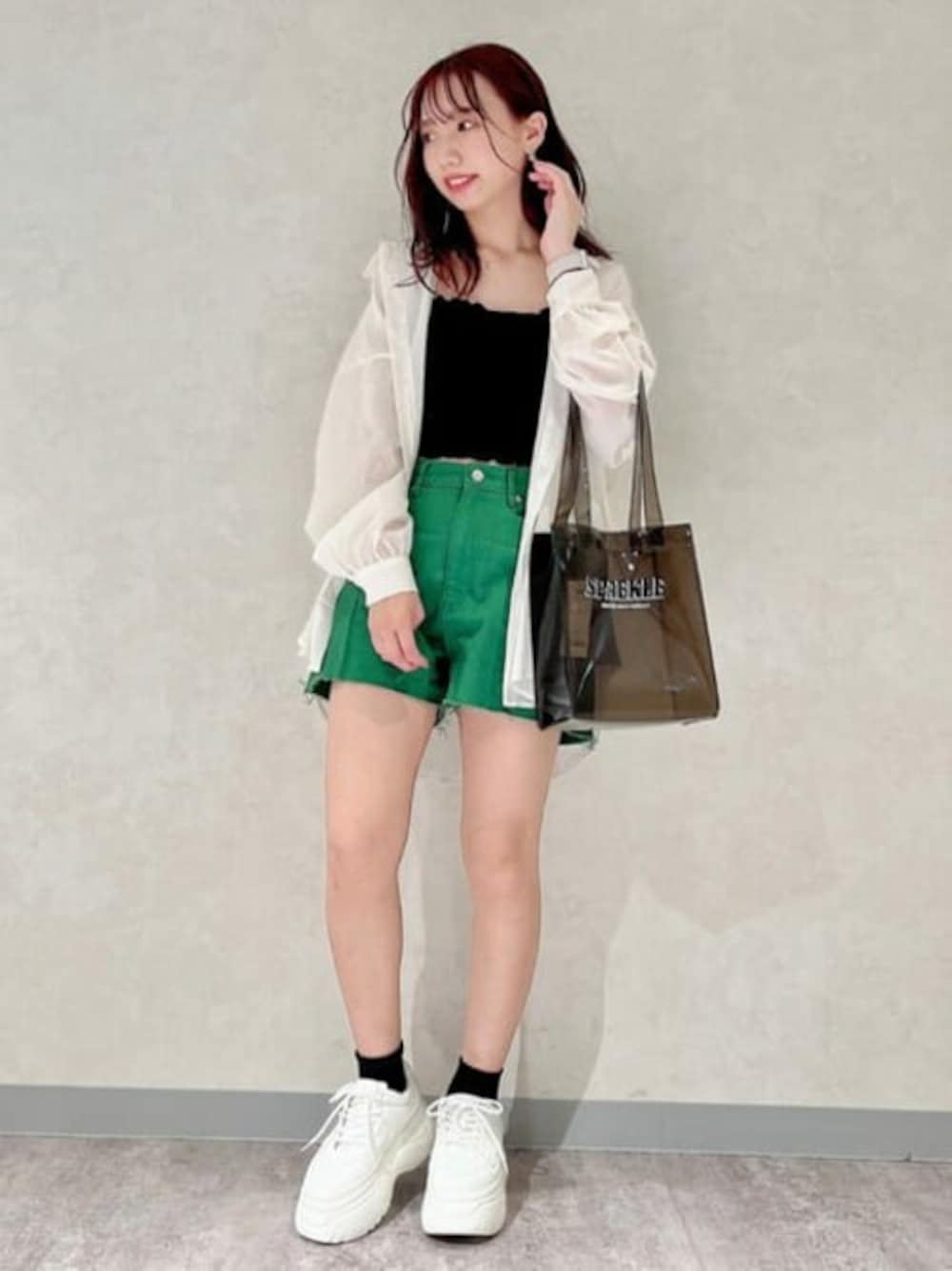 シアーシャツで大人な綺麗な女の子!! 夏らしい透け感をシャツ、カバンで表現★ 白×グリーンの色味もこれからの季節を感じさせてくれます。。