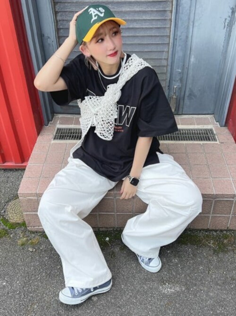 ストリートコーデ! メッシュロンTの肩掛けでおしゃれ度UP✨