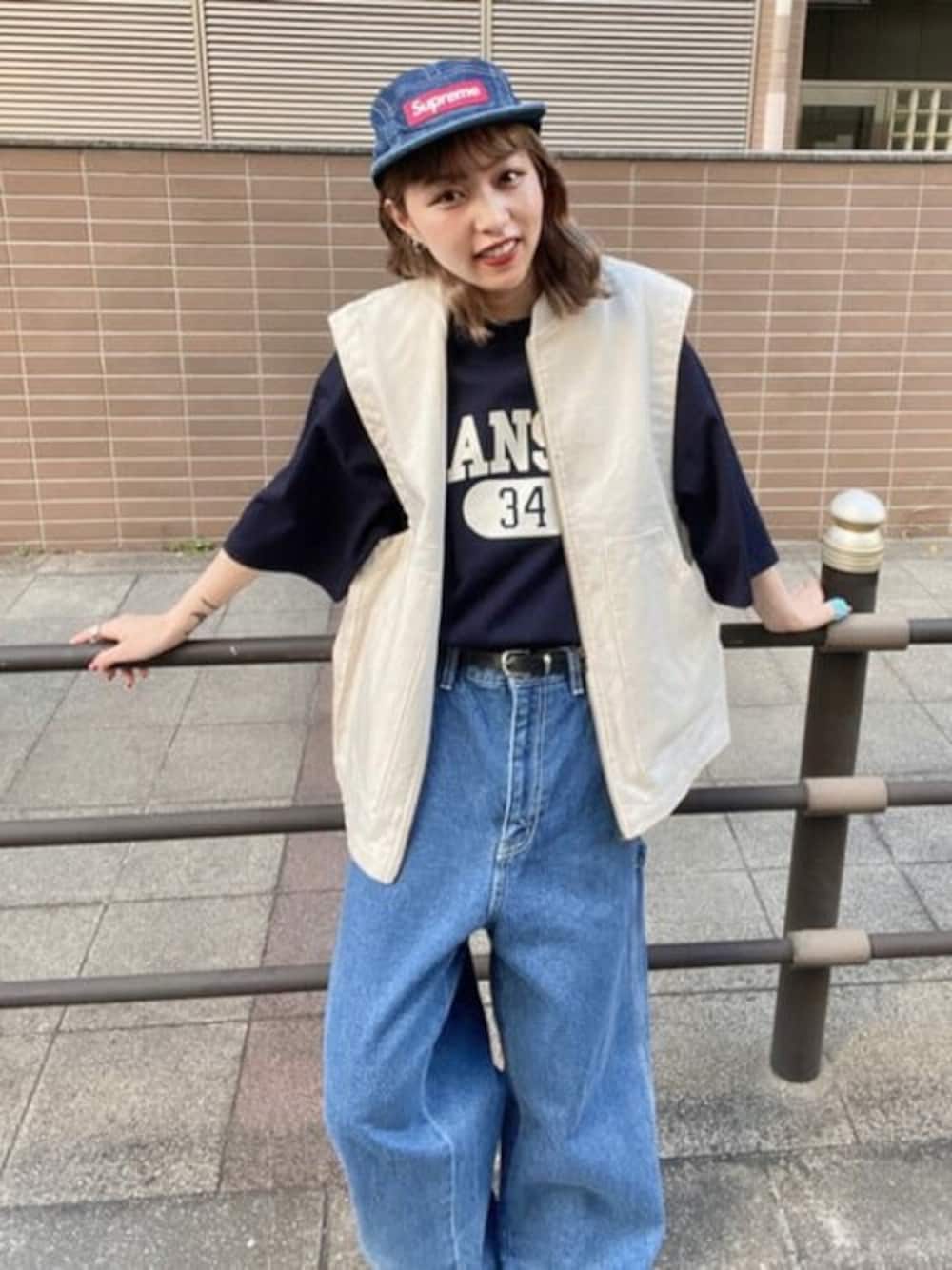 メンズアイテムだけをつかったコーデ! だぼっとさがたまらなく◎ デニムはウエストをベルトで縛って はいています!! 大きめならではのゆるっと感