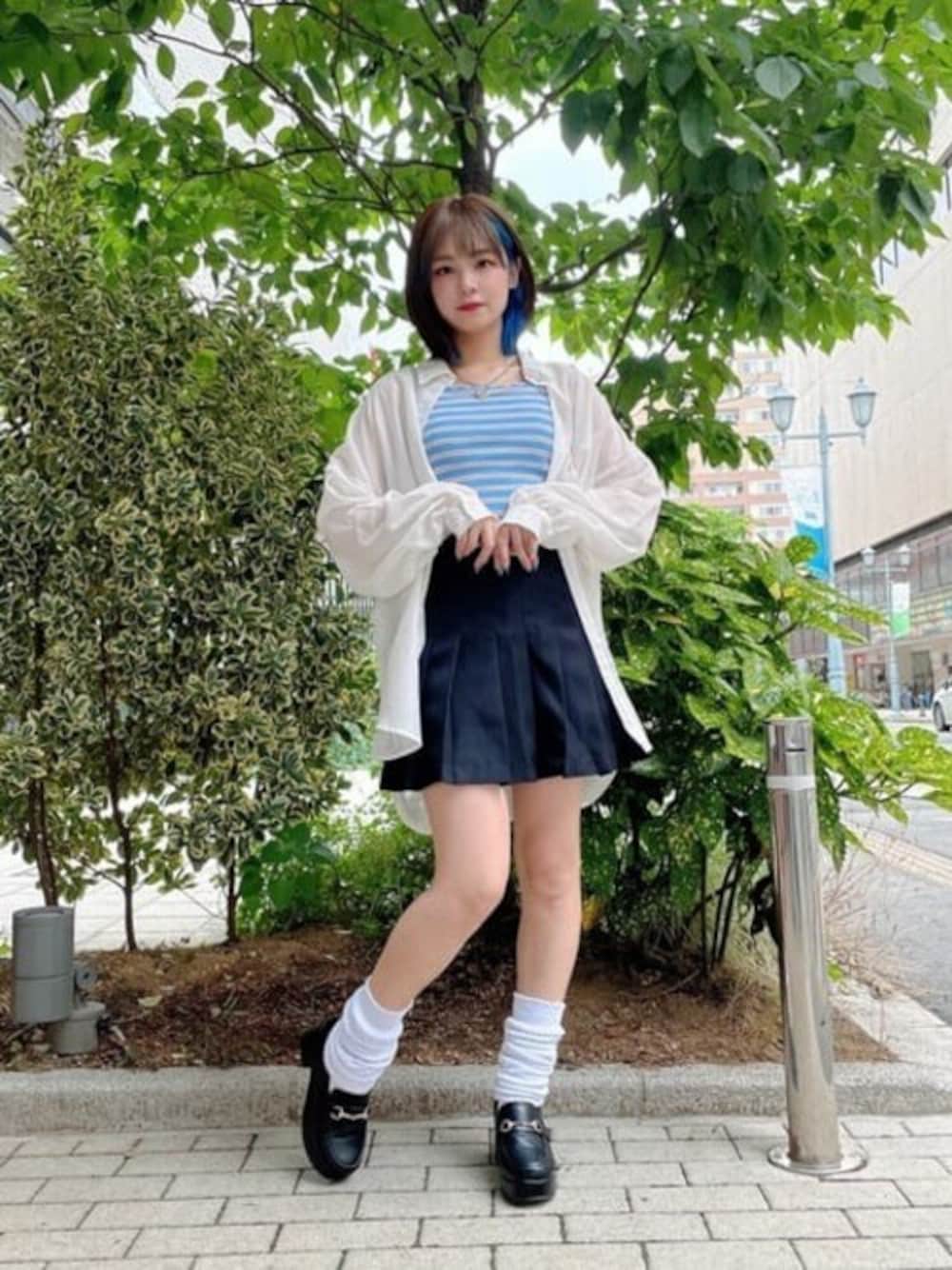『低身長さん向け 韓国ガーリーコーデ』 着回し力抜群なシアーシャツ! インナーにカラーキャミを取り入れて 周りと差をつけよう◎◎ プリーツスカートでガーリーに!