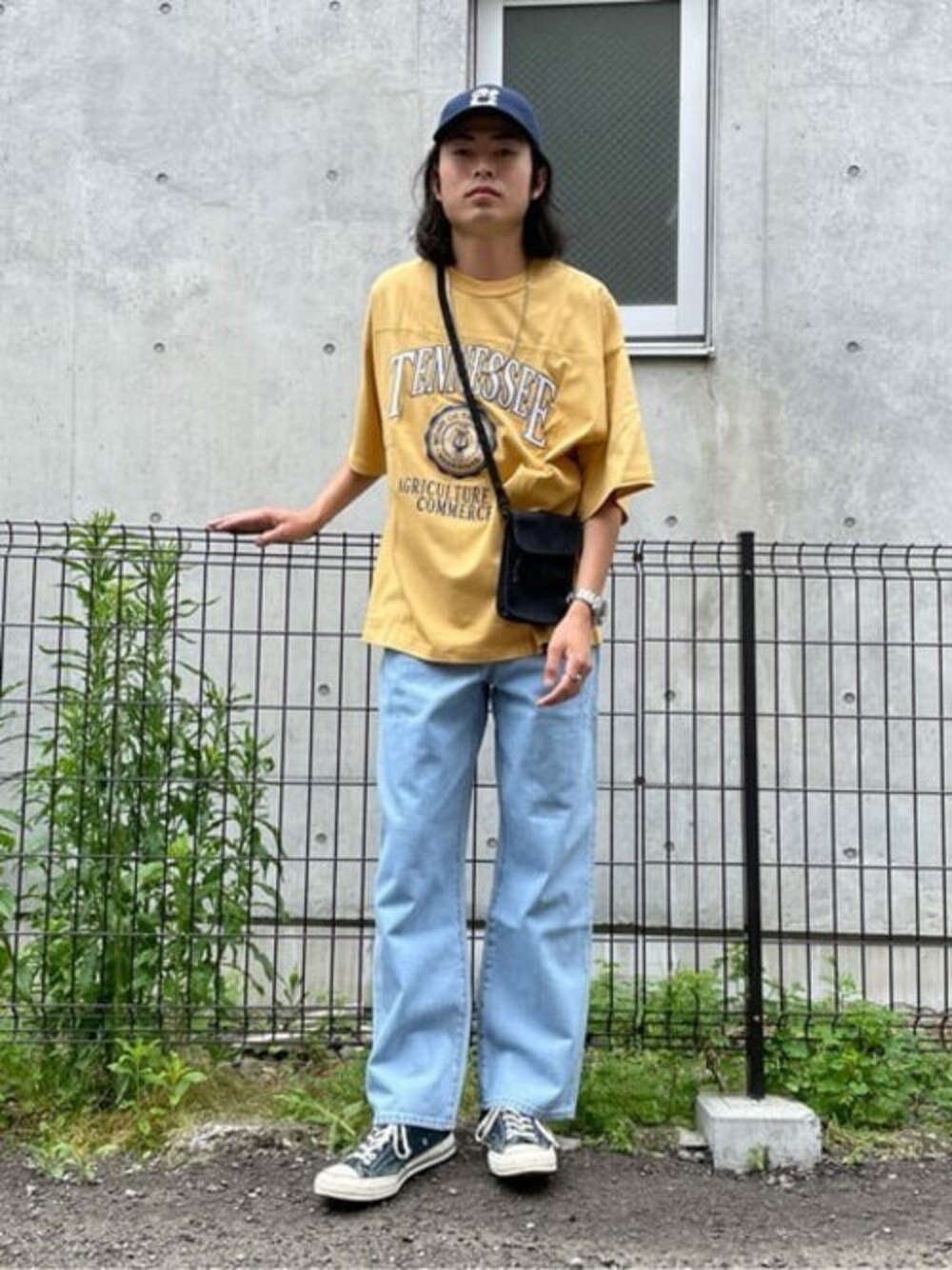 デニムがとの相性バッチリ!!イエローTシャツ!! デニムには黄色Tがこの夏あつい!! 他の小物やスニーカーはシンプルにまとめると、大人っぽい印象を崩しすぎず良い◎