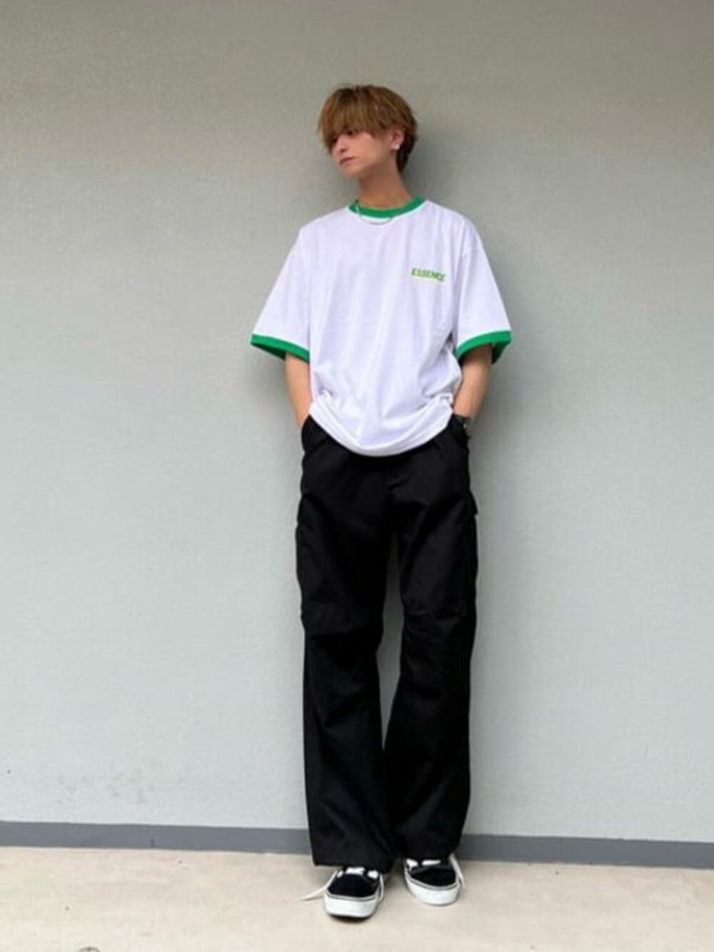 大人のストリートコーデ!! モノトーンコーデに、差し色で緑を足すとぐっとこなれ感が増します!!