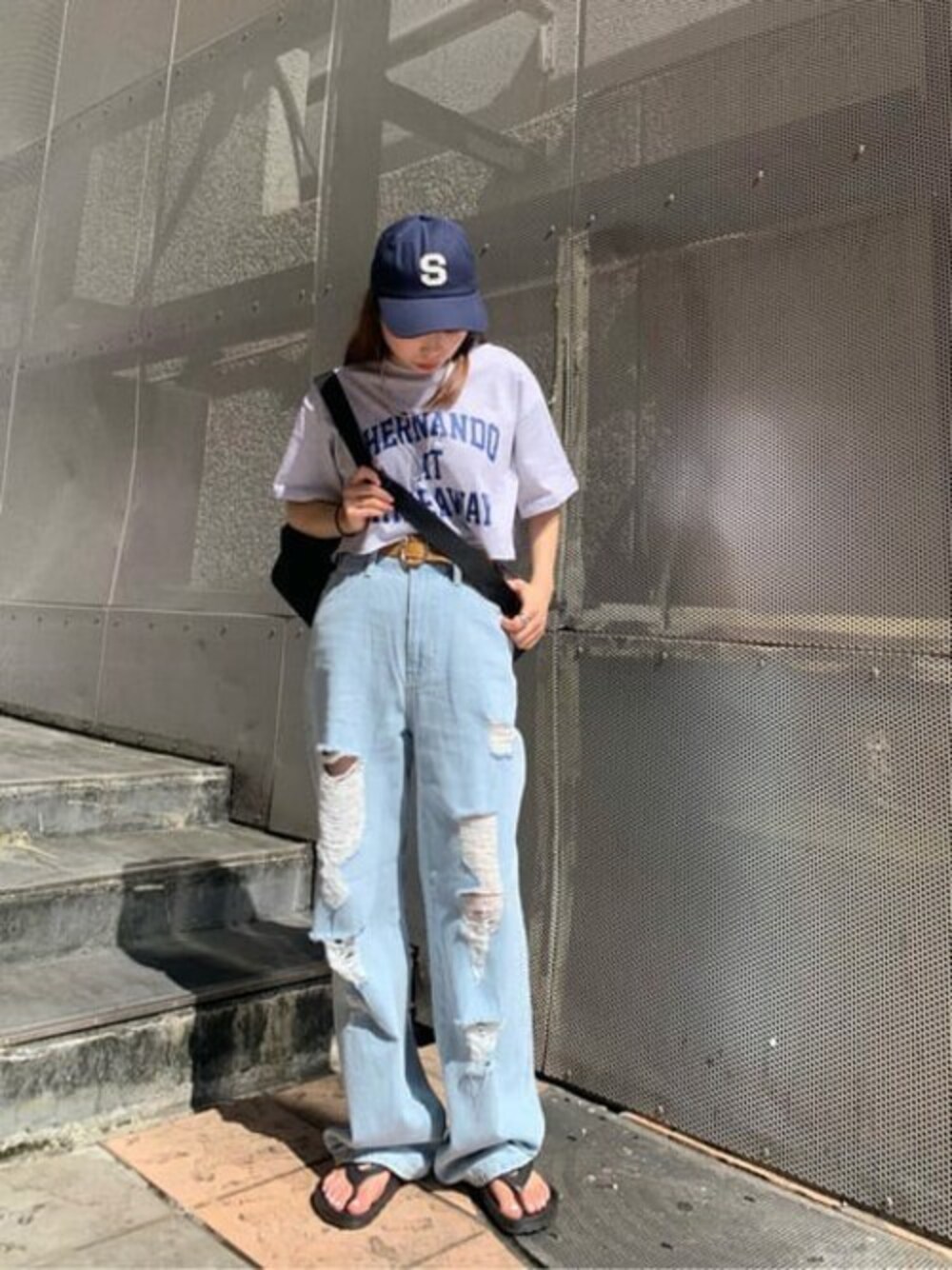 WEGO(WEGO STAFF)のデニムパンツ「WEGO/ダメージワイドストレートパンツ」を使ったコーディネート