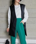 フェイクレザージレベストを使ったセットアップコーデ♡♡ 大人っぽく着こなすならブラックがオススメです☺︎! 同カラーも異素材使うことで、立体的にコーデを組むことができます!!