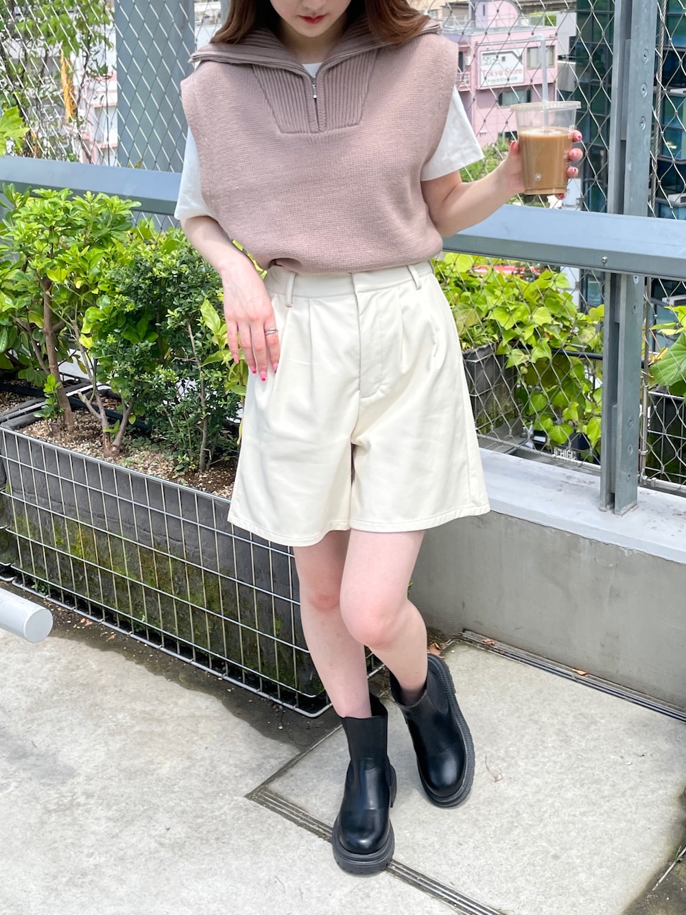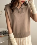 ガーリー、カジュアルどちらも好きな方におすすめの淡色コーデ! ハーフジップのニットベストは1枚で着ても、レイヤードをしてもおしゃれに着ていただけます! 袖口も広めなので細見え効果ありです♡