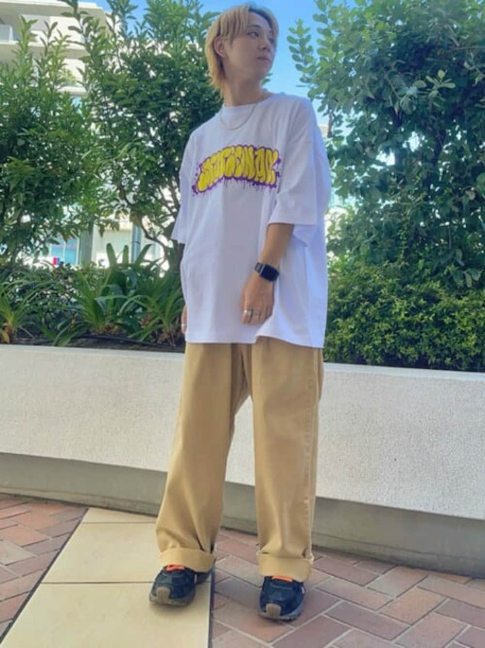 ヴィンテージスケーターパンツはオーバーサイズで履くのが今っぽい! 普段はSサイズですがLサイズを選んでゆったり着るコーデにしてみました! BIG Tとも相性がいいので何にでも合わせやすいです!