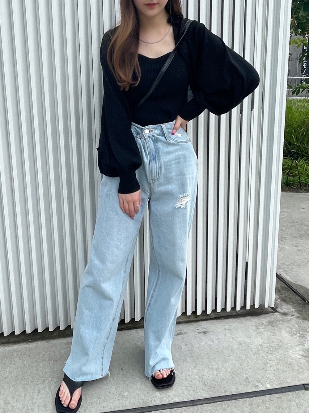 着回し力抜群のアイテムを使った大人カジュアルコーデ! ボレロとキャミはセットアイテム☆ 前のボタンを閉めればデザイン性のある大人かわいいトップスとしても着用いただけます!