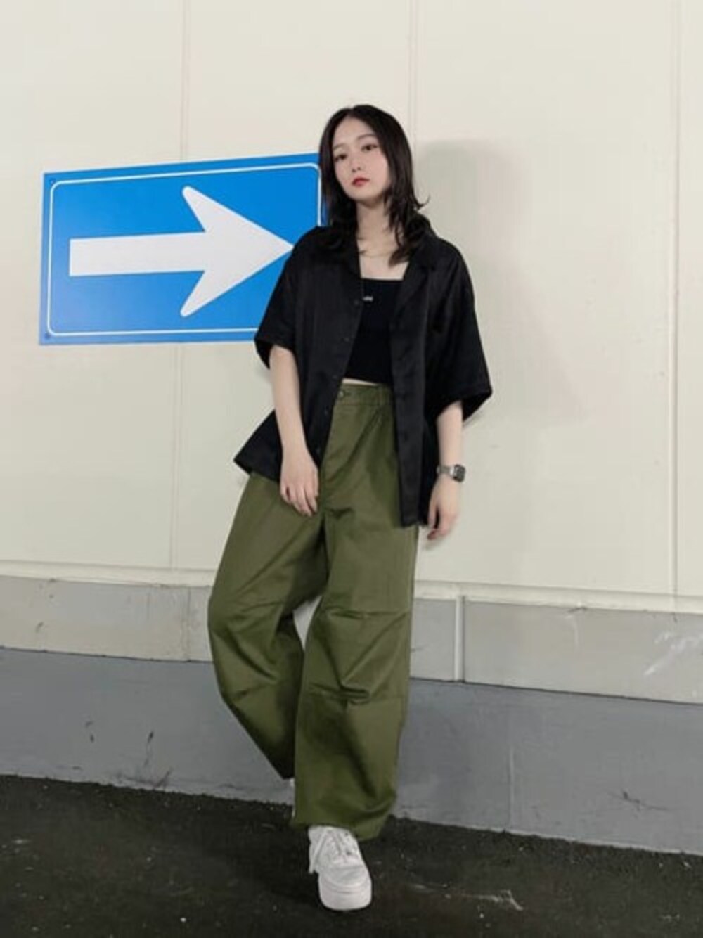 メンズのカーゴパンツで着回しコーデ☺︎ ちょっと大きめなゆるっと感が◎ カーキ×ブラックはより無骨な印象でクールに仕上がります!!