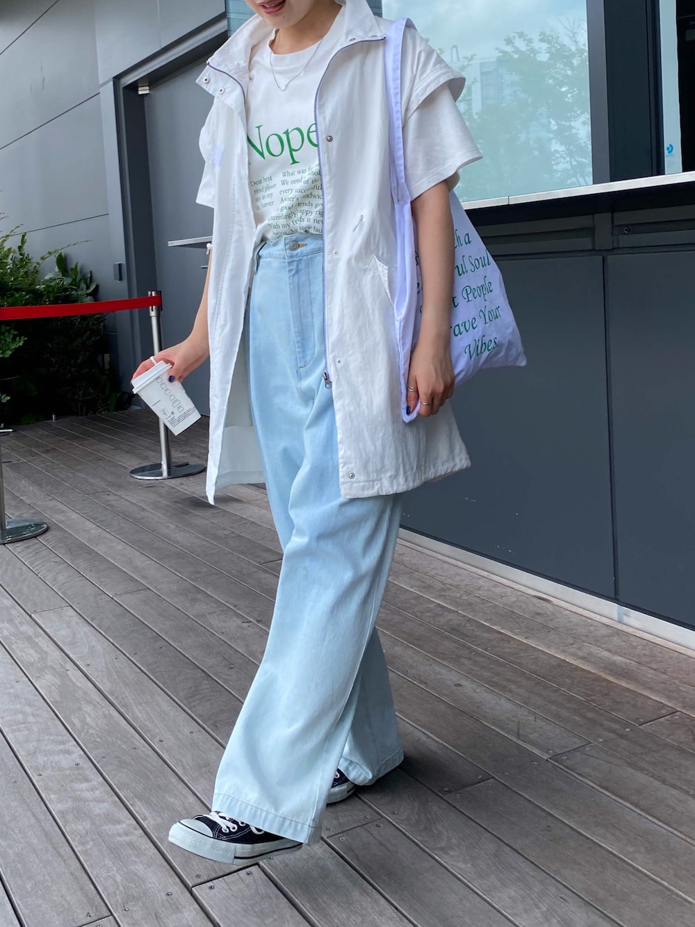 ワイドシルエットなパンツだったので、 カジュアルになりすぎないように トップスをタックインしてバランスをとりました🌿 ベストとして着用しているアウターは、 モッズコートとしても着ていただける 2WAY仕様です💫💫