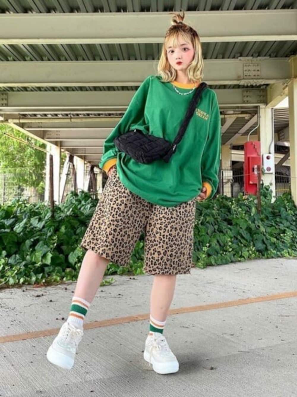 派手目なレオパードも、 ポップな色のロンTと合わせてカジュアルダウンすれば けばけばした印象が抜けて誰でも挑戦しやすくなります♪