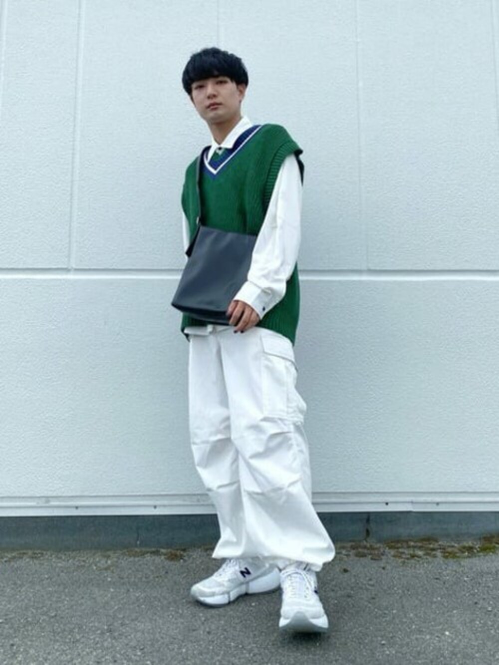 お手本きれいめ秋コーデ!! グリーン×ホワイトは今期大注目の組み合わせです! ベストはきれいめにまとめても、カーゴパンツ等のストリート色強いアイテムでも◎