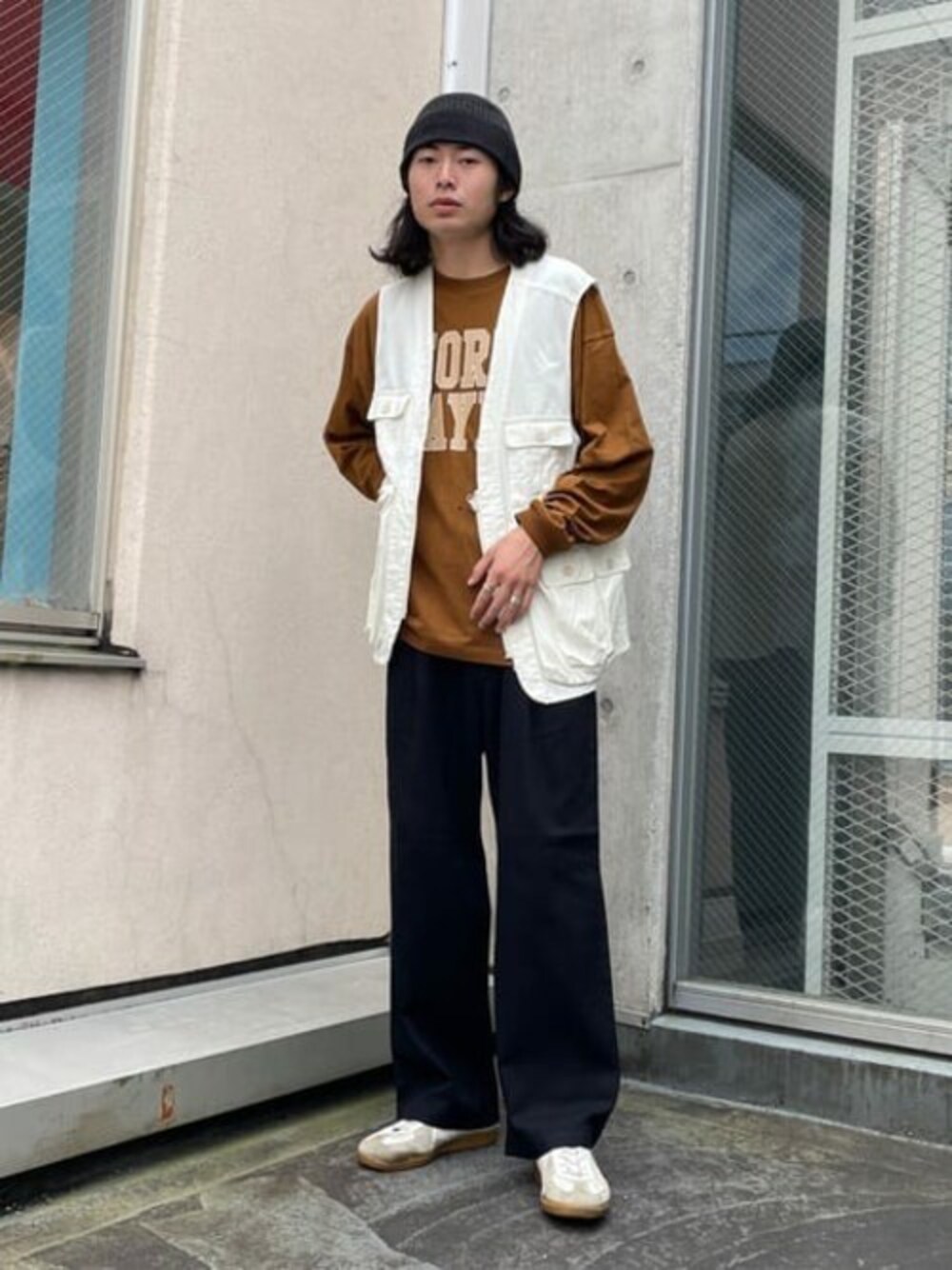 新作のカレッジロンTとベストをアースカラーで合わせて秋らしいストリートコーデに! ワイドミリタリーパンツはきれいめコーデのアクセントや ストリートコーデのまとめとして幅広く使える万能アイテム!
