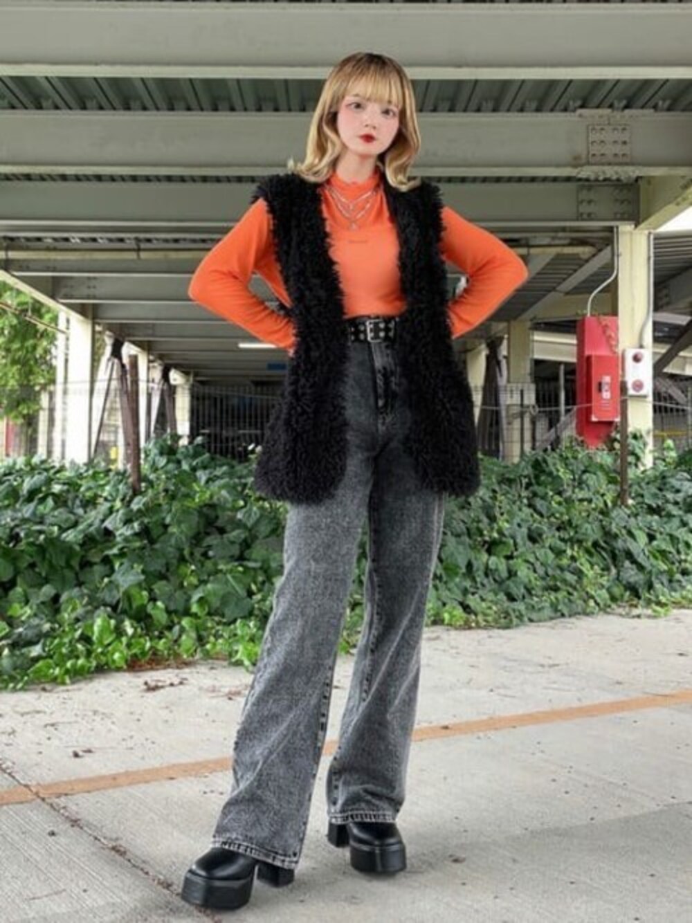 きれいめな印象のファーベストを あえてストリートテイストでスタイリング! いい感じにまとまりました☆