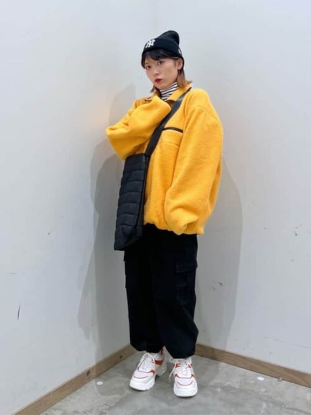 フリースのイエローが可愛すぎる(^_^) ハーフジップなので完全に閉めても、開けて襟を折ってもかわいい(^_^) レディースが着るとお尻が隠れるくらいの丈感になってめちゃかわです(^_^)