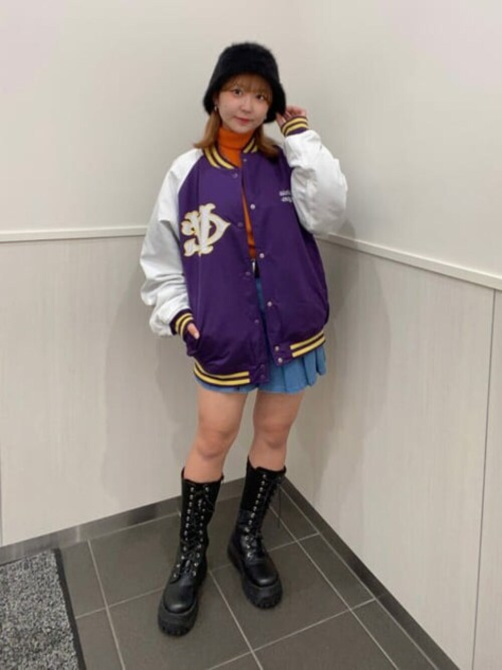 ご覧頂きありがとうございます🧡 メンズのスタジャンを使ったy2kコーデ🎶 リバーシブルで着用頂けるので、 着回ししやすいです❕ 丈感も丁度いいので、 パンツと合わせても相性抜群です❕