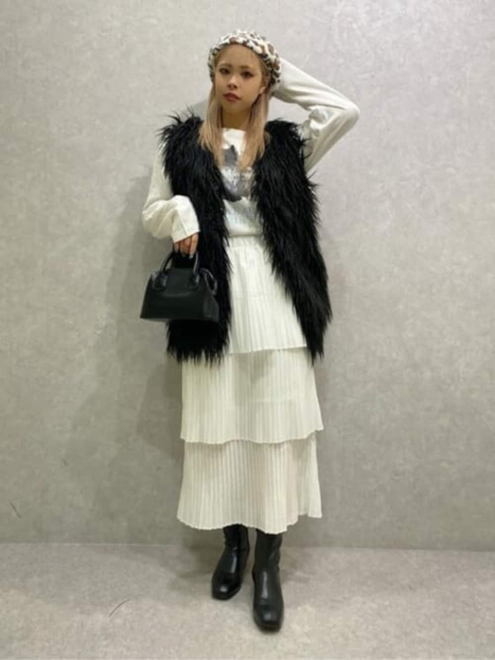WEGO(WEGO STAFF)のベスト「ボリュームフェイクファーベスト」を使ったコーディネート