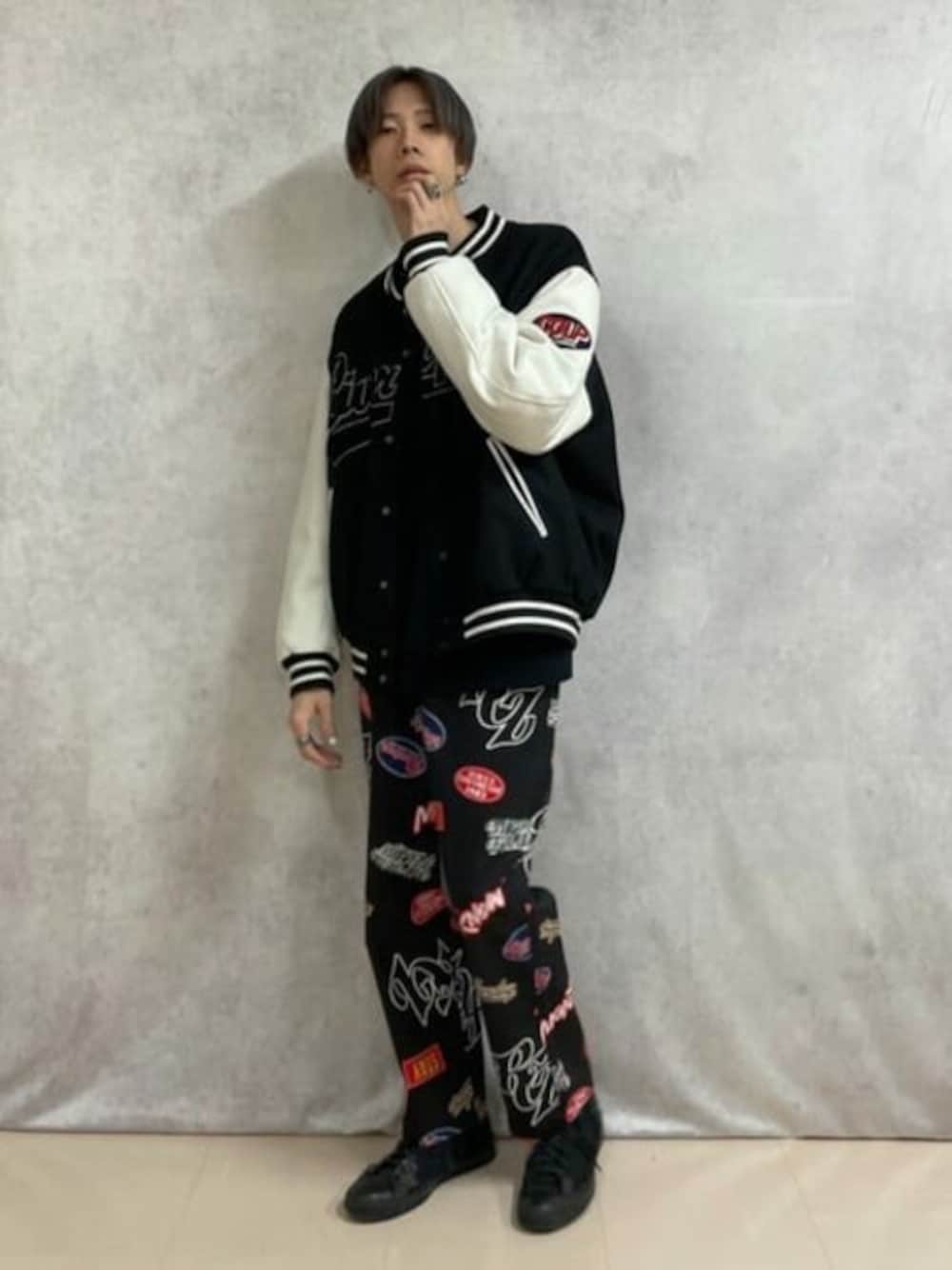 スタジャン×総柄イージーパンツのスタイリング!履いて羽織るだけでストリートな雰囲気ばっちりです◎