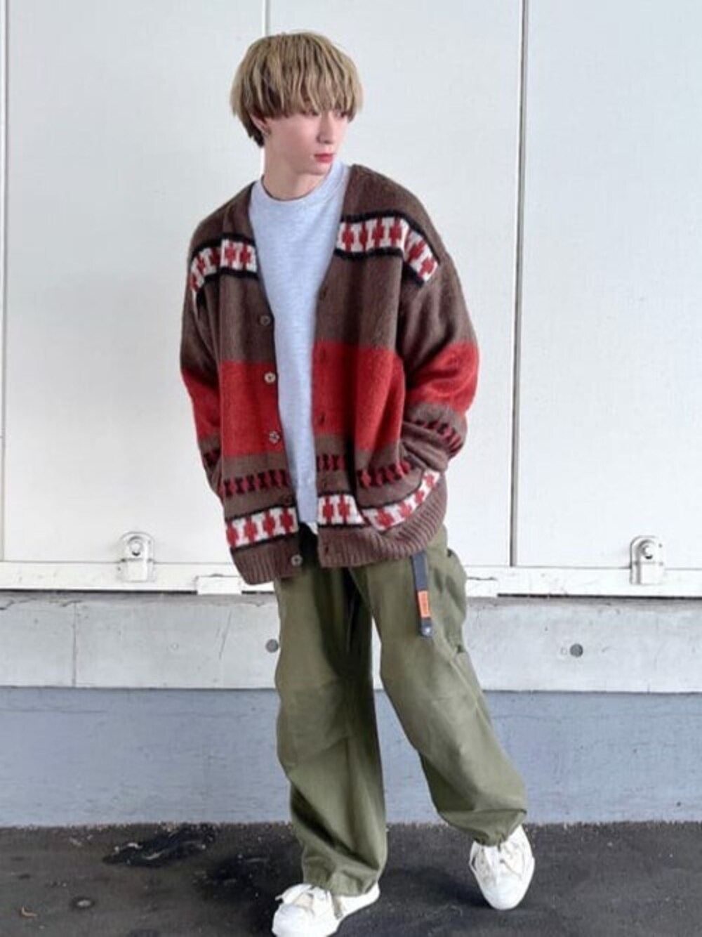 WEGO(WEGO STAFF)のカーディガン/ボレロ「WEGO/モヘアライク総柄BIGカーディガン」を使ったコーディネート