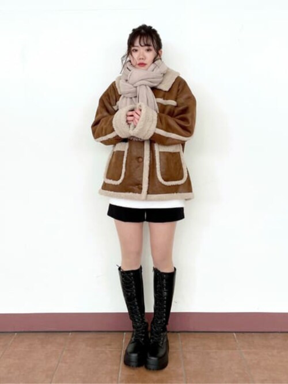 WEGO(WEGO STAFF)のムートンコート「WEGO/ボア切替ランチコート」を使ったコーディネート