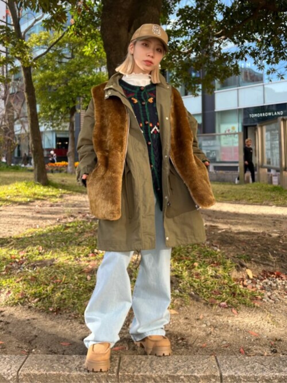 ・ファーベストはメンズアイテム!古着好きにオススメ♪ 大きめのサイズ感でモッズコートの上に着ても余裕があります🙆🏼♀️ ・モッズコートはレディースのアイテムなので大きすぎないサイズ感で着用可能! 薄手の生地なので春・秋に着用していただくのが◎ ・ボトムスはメンズのMサイズ! 紐が付いているためベルト入らずで履けてストレスがなく履くことが出来ます! 長め丈がストリートな雰囲気が出て◎ ・シューズは今年トレンドのブラウンのブーツ🍂 サイドにジップが付いているので着脱しやすく、ヒールも少しあって可愛いです❤︎ ・キャップはNEWERA🧢ベージュの配色が可愛くてお気に入りです♡サイズ調節可能なので男女どちらも被れます! ・中に着ているニットは古着です!