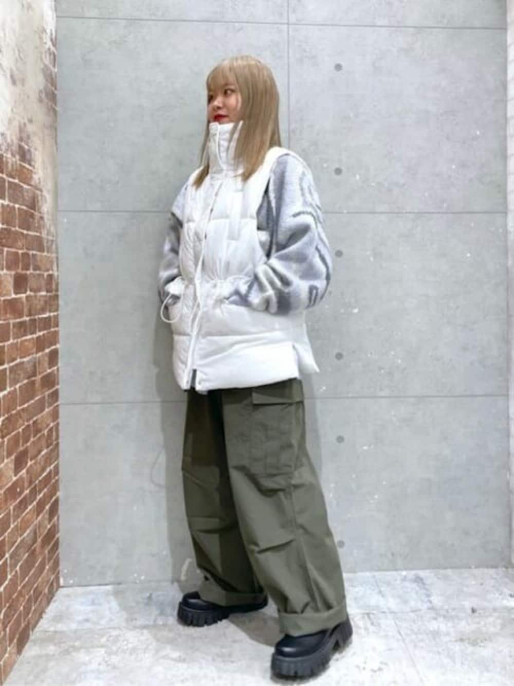 わたしのイチオシアイテムのパデッドベスト🐇 ウエストが絞れて形もかわいい、、 しかも襟を立てれば首元もめちゃくちゃ暖かいので◎